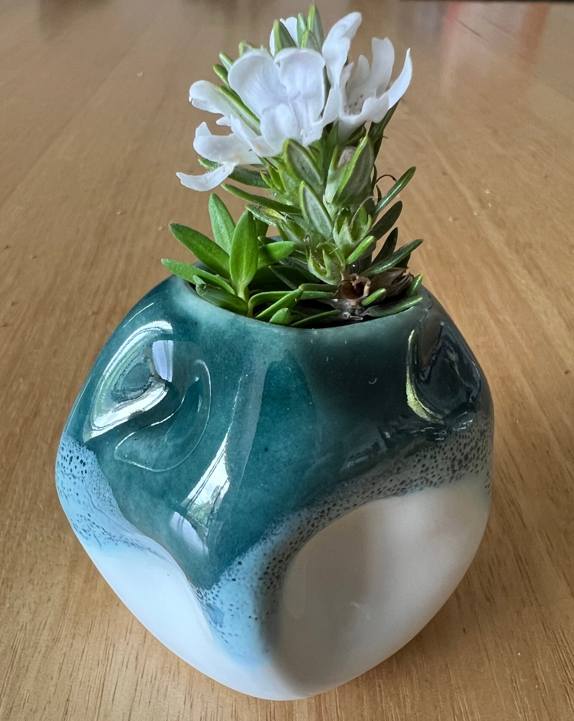 Stunning little ceramic bud vase, perfect for displaying delicate flowers. Perfectly sized making this item a great decorative addition to any small space like a window sill or small bed side table. Standing 6cm tall these gorgeous little bud vases are available in a wide range of colours